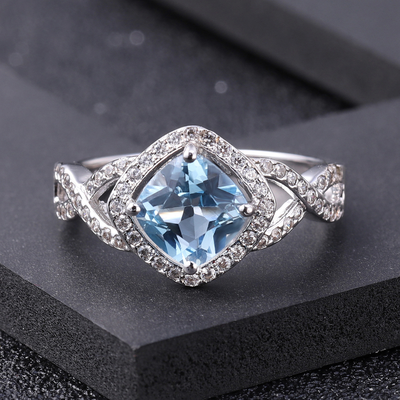 Sertifikalı Laboratuvar Elmas Mücevherler Mavi Yastık Elmas Özel Yapılmış Şık Elmas Yüzük