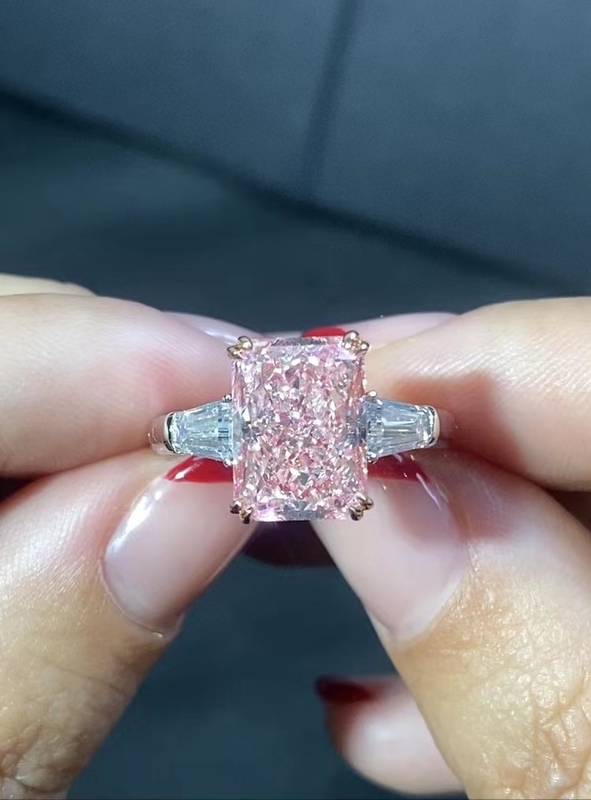 Mücevher Tasarımı Pembe Parlak Büyük Boyutlu Laboratuvar Elmas Mücevherler Sertifikalı Özel Yapılmış Şık Elmas Düğün Yüzüğü