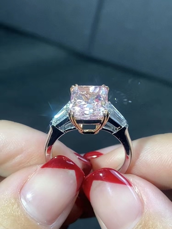 Büyük Boyutlu Laboratuvar Elmas Mücevherler Sertifikalı Pembe Yastık Elmas Özel Yapılmış Şık Elmas Düğün Yüzüğü