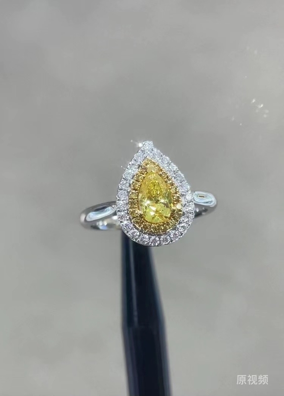 Sertifikalı Mücevher Tasarım Laboratuarı Elmas Mücevher Sertifikalı Sarı Pear Elmas Özel Yapılmış Elmas Düğün Yüzüğü