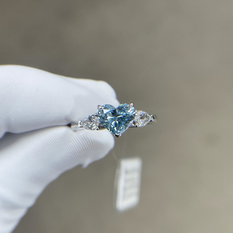 IGI Sertifikalı 1.27ct Laboratuvarda yetiştirilmiş sentetik mavi elmas kalp şekli 18k beyaz altın kadın nişan yüzüğü