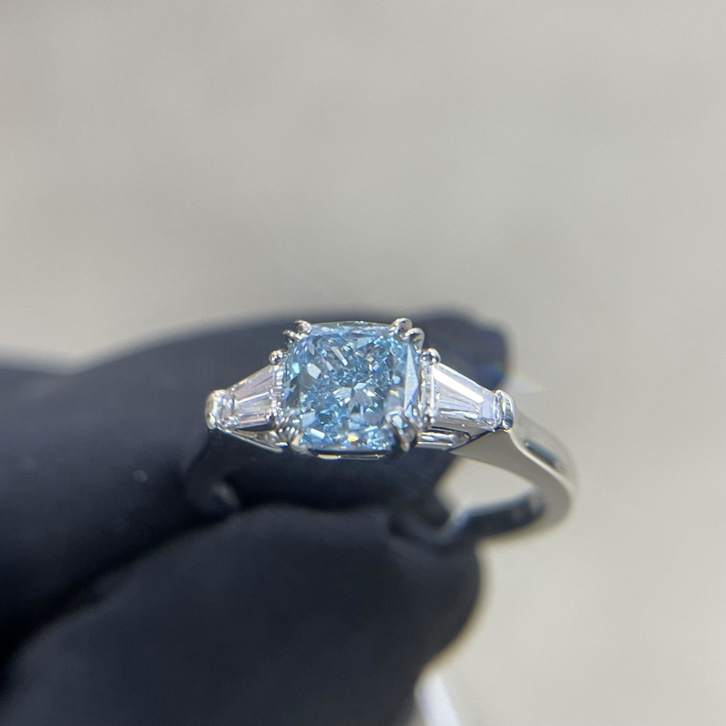 IGI Sertifikalı 1.13ct Yastık Laboratuvar Büyümüş Mavi Sentetik Elmas 18k Altın Kadınlar Özel Yüzük