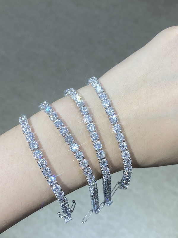 Laboratuvarda yetiştirilmiş elmas bilezik.Beyaz yuvarlakEtrafında küçük boyutlu elmaslar, dekorasyon, parti, doğum günü, hediye ve yıldönümü için tenis bileziği.