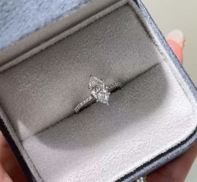 1 sent Marquise Cut Pave Style Laboratuvar Büyümüş Elmas 18K Beyaz Altın Nişan yüzüğü