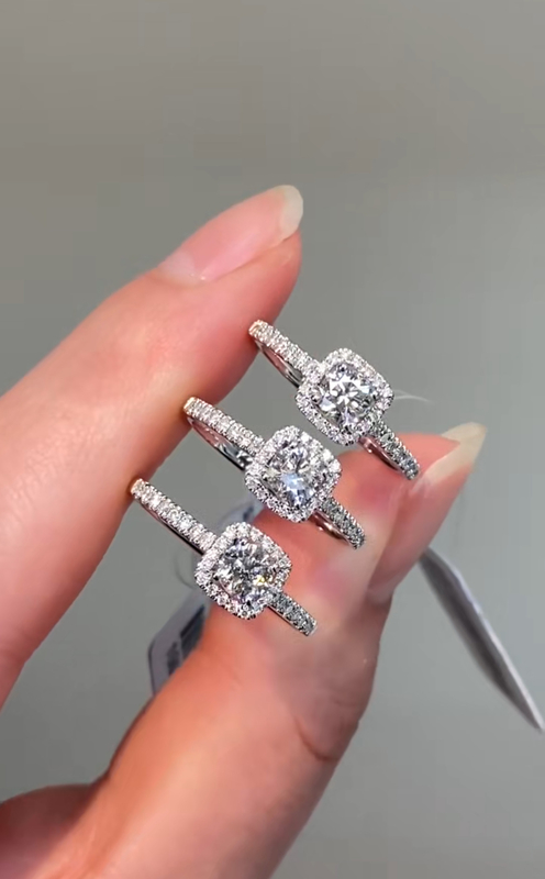 Halo 18K Beyaz Elmas Yüzüklü Laboratuvar Üretimli Elmas Yüzükler