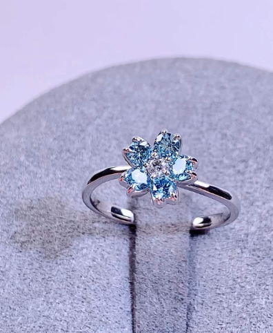 Yuvarlak şekilli Mavi pırlanta yüzükler VS Laboratuvar Yetiştirilmiş Pırlantalar 18K Beyaz, EX